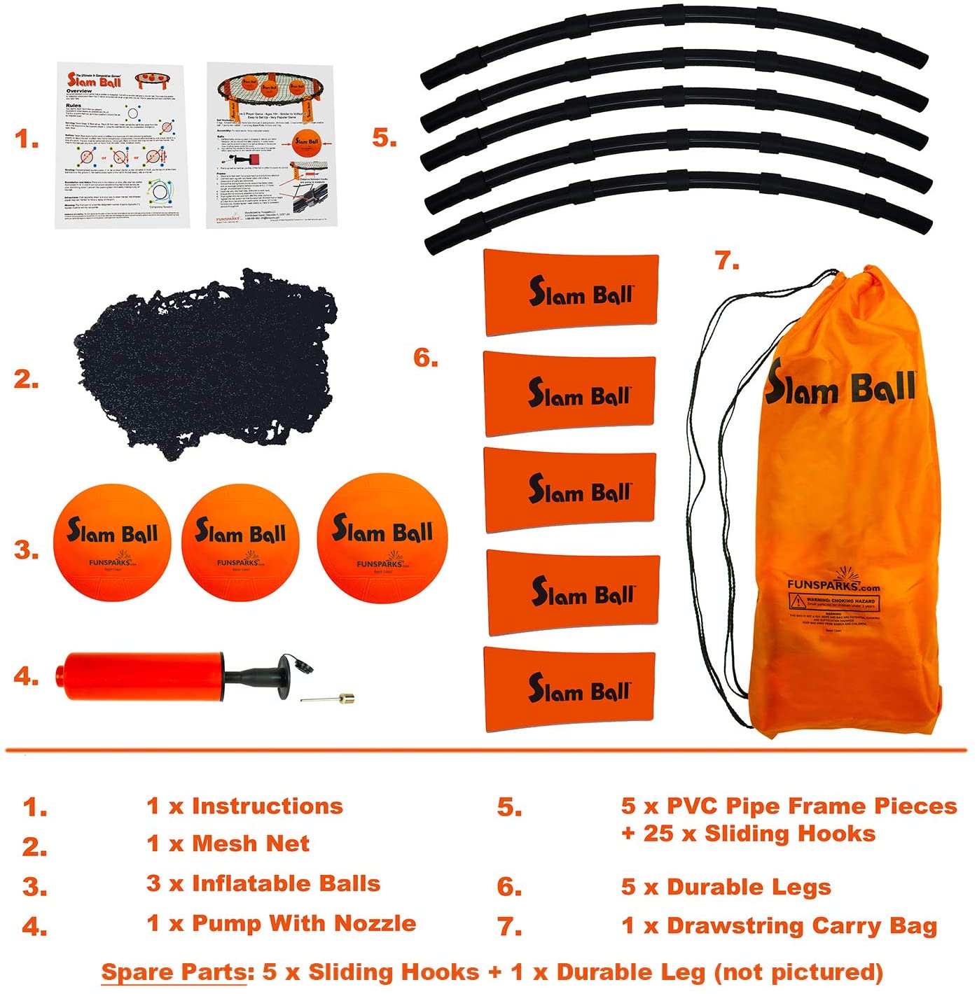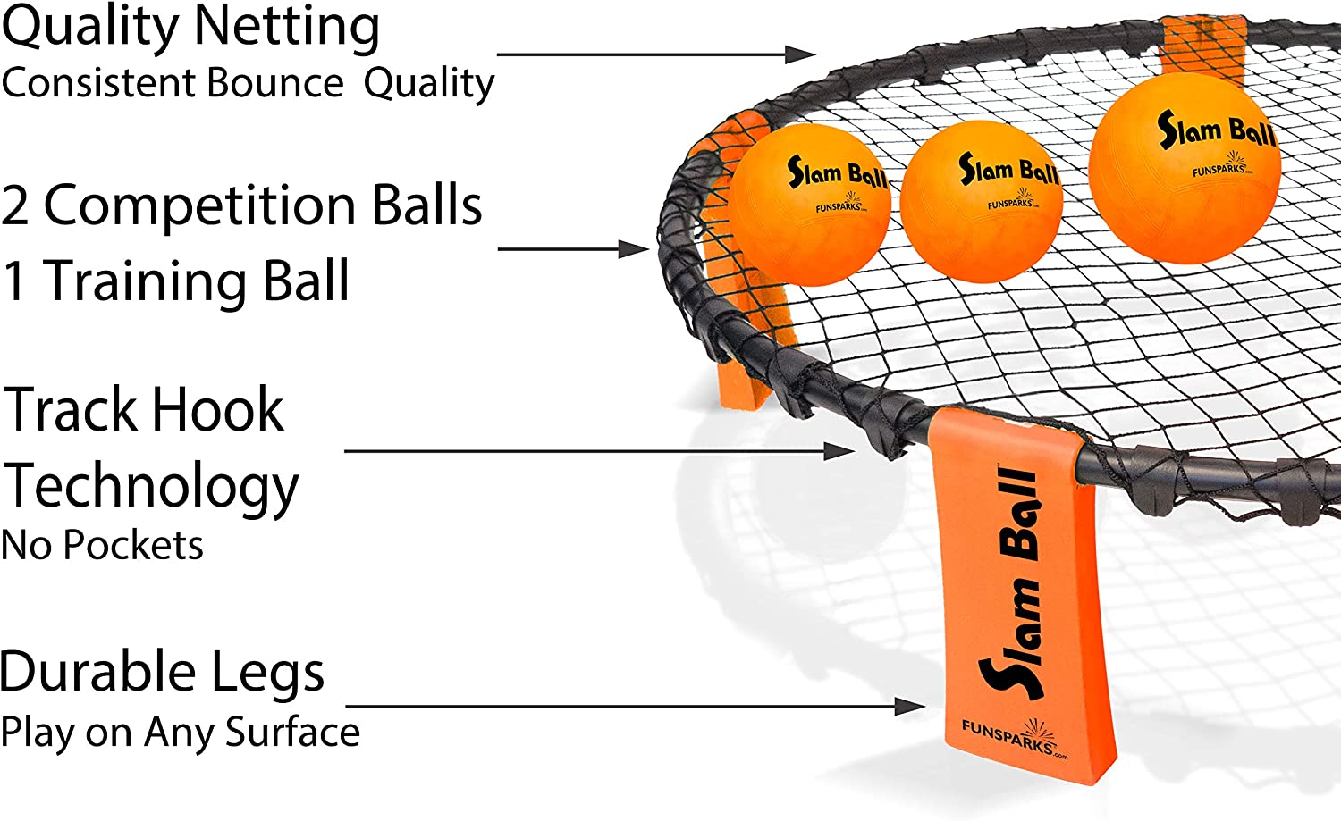 Slam Ball Game - Spike The Ball into The Net at a Park, Beach, Lawn and Backyard – Rally, Set, Smash or Spike Game – Includes Playing Net, 3 Balls, Carrying Bag and Rules