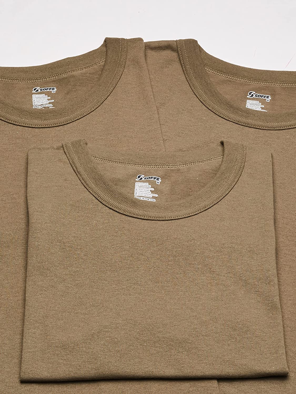 The 50/50 Crew Neck tee comes in a 3 pack and features our famous reinforced double-stitched neck to retail shape. It is made of a soft, combed cotton jersey and is strong enough to withstand touch and elite standards. Perfect shirt for every day wear or wearing as an undershirt. Workout in what our Military Soldiers workout in. Physical training is an everyday routine in the military and Soffe t-shirts have been a prefered workout t-shirt since 1946.