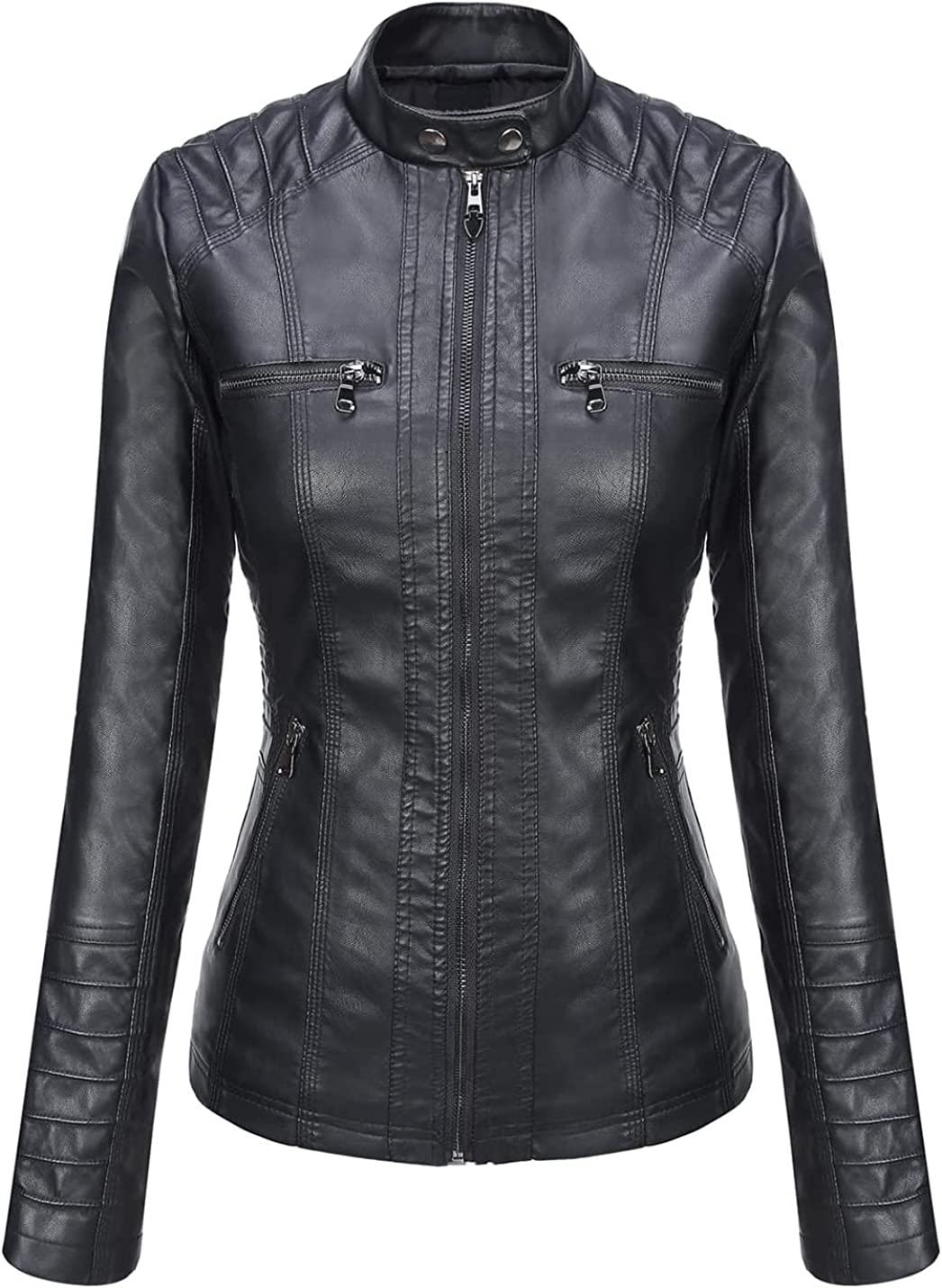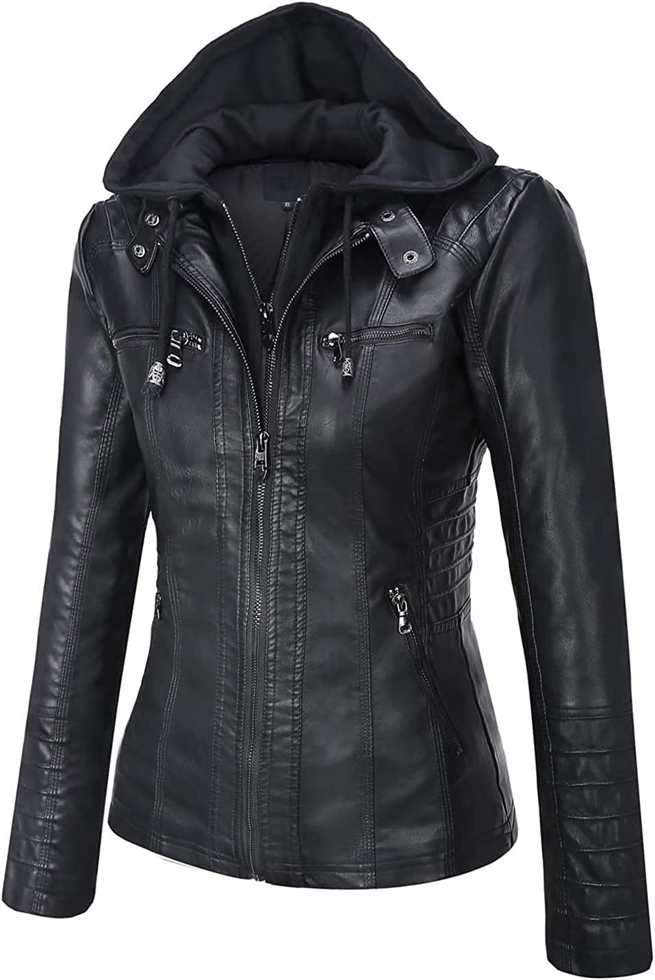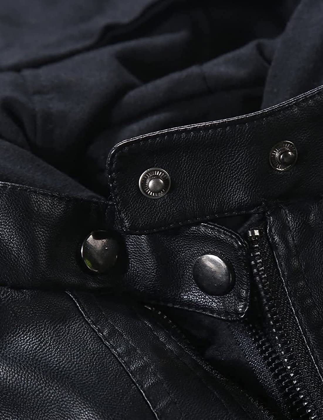 Springrain Women's Casual Stand Collar Detachable Hood PU Leather Jacket