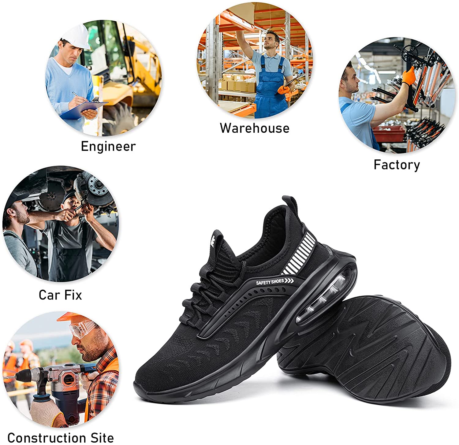 Steel Toe Shoes for Men Work Women Lightweight Air Cushion Sneakers Slip Resistant Safety Work Boots Indestructible Shoe
