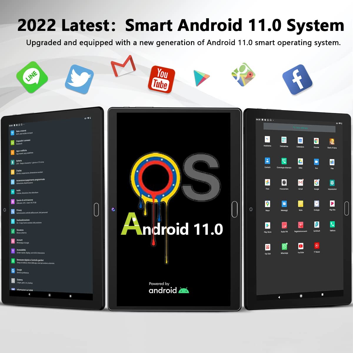 Tablet 10 inch Android 11 Octa-Core Processor Dual Sim Cellular 4G LTE Tablet PC 4GB RAM 64GB ROM 256GB Expandable, Google Certified Tablet with Keyboard 13 MP Camera Bluetooth WiFi GPS