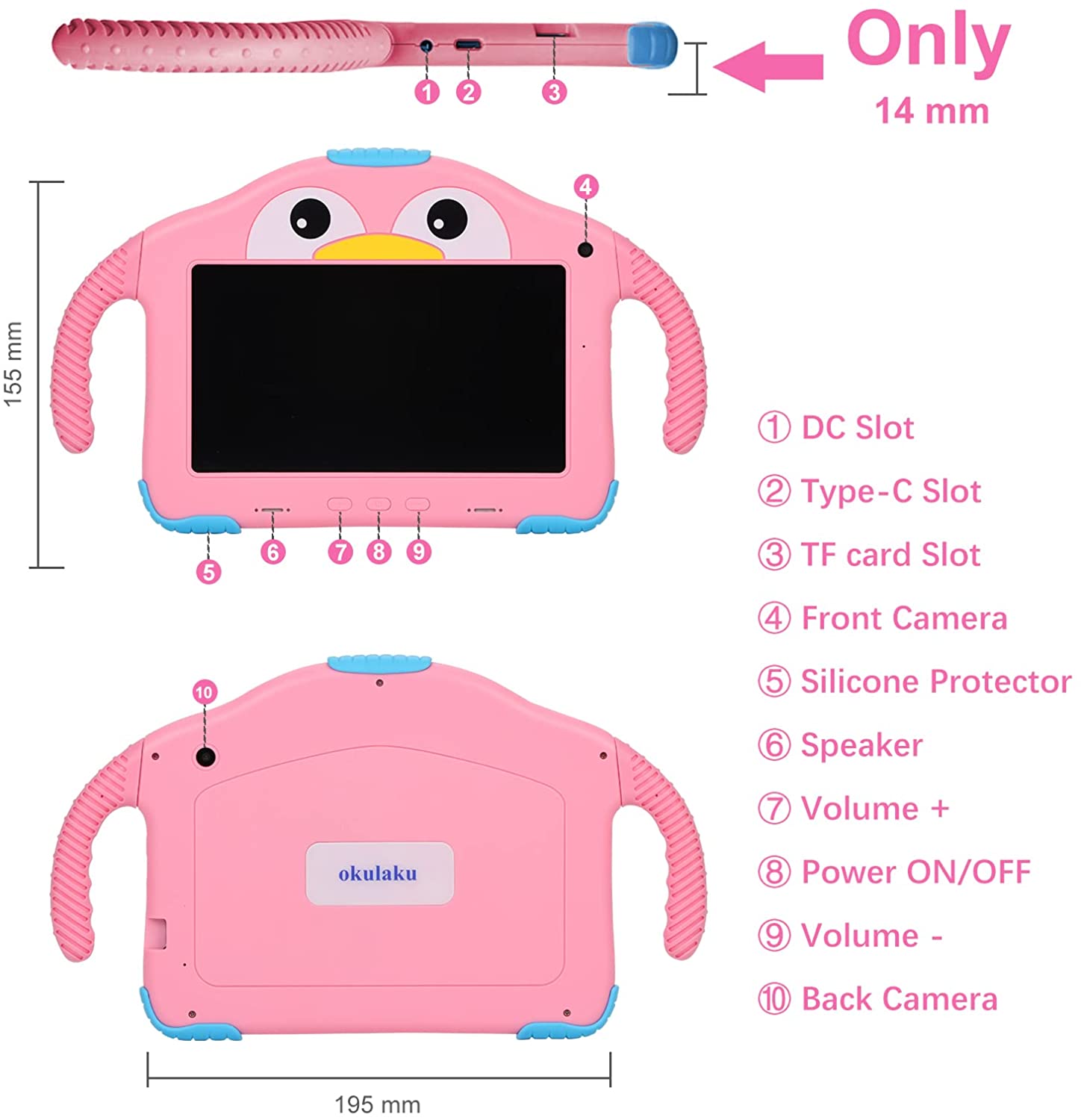 Tablet for Kids Tablet 7 inch Toddler Tablet with WiFi Dual Camera 32GB Parental Control Google Play Store YouTube Netflix Android 10 Childrens Tablet for Toddlers Girls Boys Kid-Proof Case,Pink