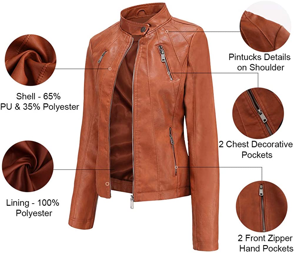 Tagoo Faux Leather Jacket Women Bomber Jacket Cropped Jacket Moto Coat for Biker with Belt