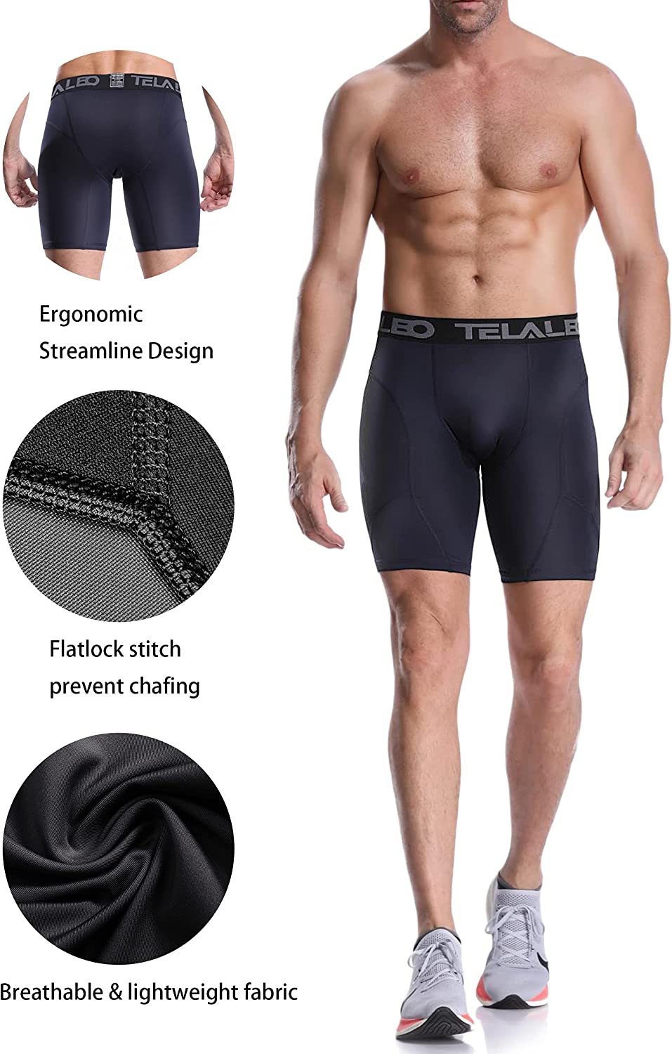 TELALEO 5/6 Pack Compression Shorts Men Spandex Sport Shorts Athletic Workout Running Performance Baselayer Underwear