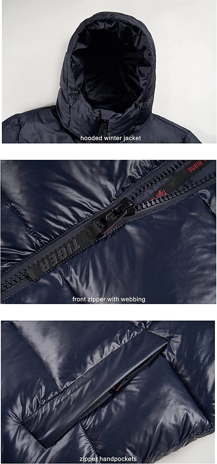 TIGER FORCE Men's Hooded Puffer Jacket Water resistant Heavyweight Sportswear Snow Coat Warm Black Dark Blue