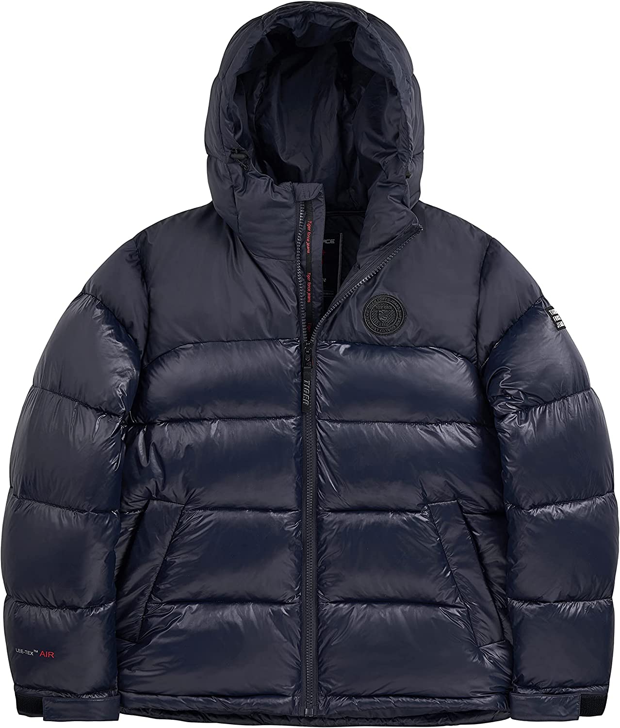 TIGER FORCE Men's Hooded Puffer Jacket Water resistant Heavyweight Sportswear Snow Coat Warm Black Dark Blue