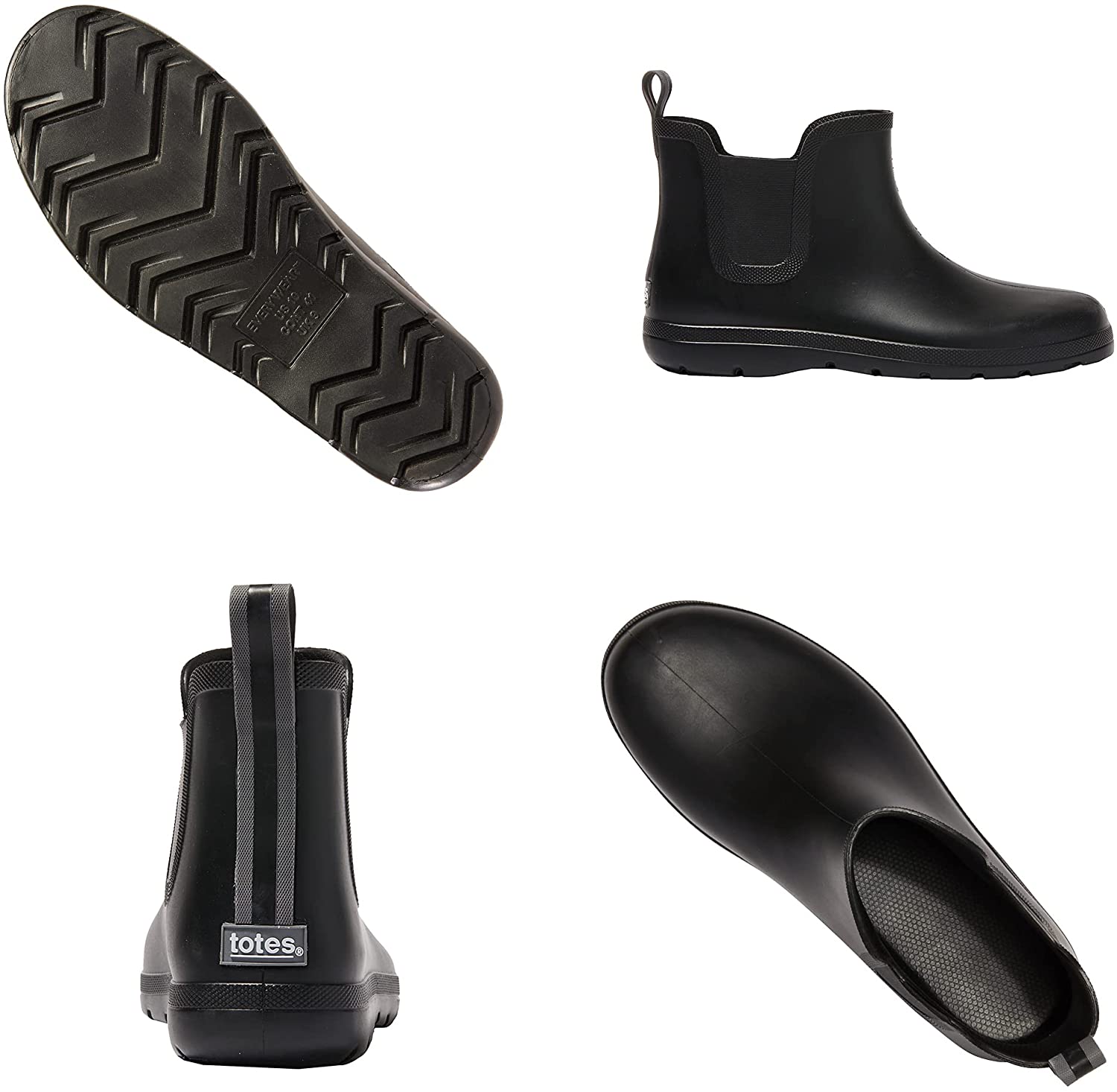 These slip-resistant Men's Chelsea Rain Boots by totes Cirrus feature revolutionary Everywear technology, making them 60% lighter than ordinary rain boots. With a modern pull-on design and a seamless 100% waterproof, lining-free shell, these lightweight rain boots will keep your feet dry year-round. Lifetime durability and comfort that lasts with simple styling you can wear to work—never worry about wet feet during those rainy day commutes again.