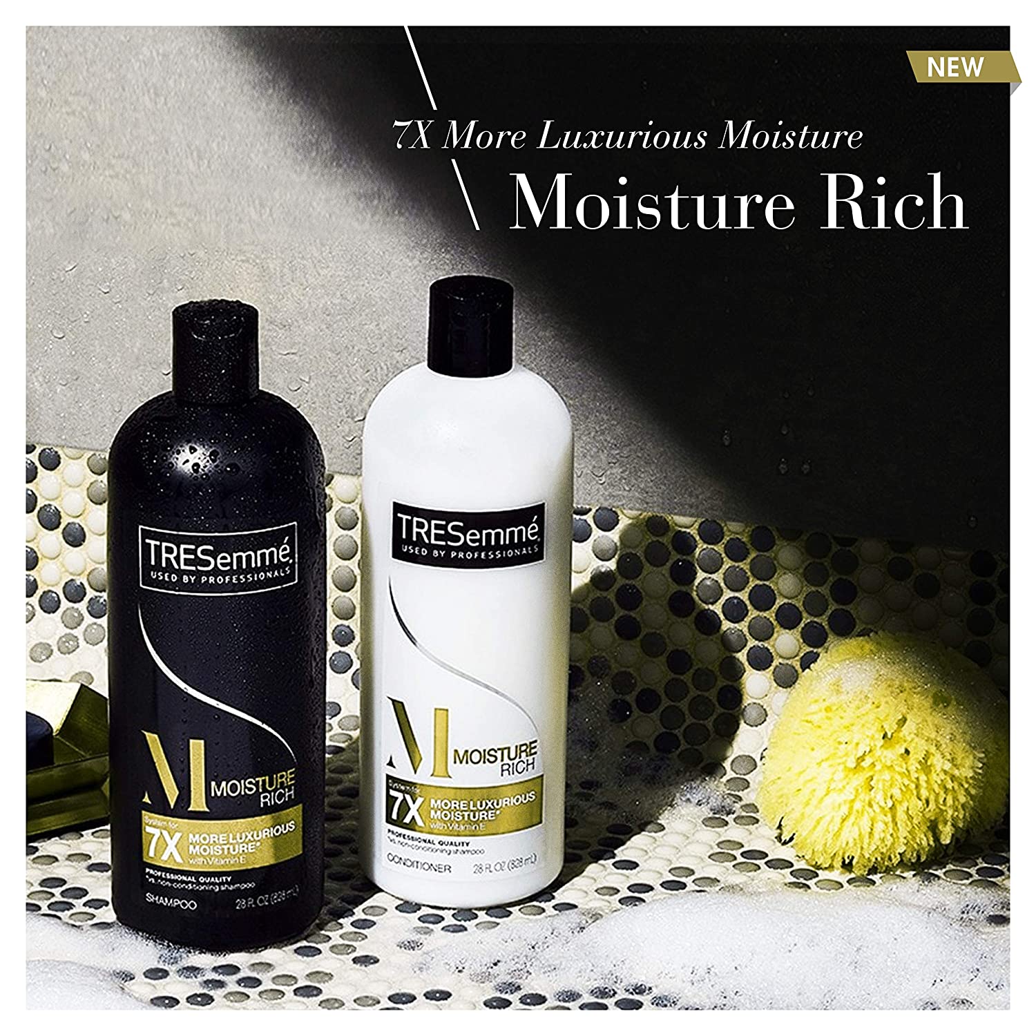 When it comes to replenishing moisture to dry locks, use TRESemmé Moisture Rich Shampoo for Dry Hair to restore natural vibrancy for a healthy look and eye-catching shine. TRESemmé wants you to look and feel your best, which is why the TRESemmé Moisture Rich System delivers optimized hydration that targets dryness and locks in moisture where your hair needs it most—every day. Enriched with vitamin E, this gentle shampoo is designed to deliver optimum hydration that targets dryness and seals in moisture. The lightweight formula means you can turn dry, damaged hair into soft, manageable strands with beautiful shine. It’s also safe for colored hair. How to use the Moisture Rich System: Step 1: Coat hair with a liberal amount of TRESemmé Moisture Rich Shampoo. Step 2: Gently massage the scalp and roots with fingertips to work into a lather. Step 3: Lightly squeeze the shampoo from roots to ends and rinse thoroughly. Step 4: Apply an adequate amount of Moisture Rich Conditioner from mid-shaft to ends. Step 5: Run a wide-tooth comb or fingers from roots to ends to detangle and fully coat hair. Leave for 2-3 minutes, then rinse thoroughly. Step 6: Finish with your favorite TRESemmé styling products as desired. Are you looking for a moisturizing shampoo for damaged hair? The clear choice is TRESemmé. Use TRESemmé Shampoo with TRESemmé's salon-quality hair styling products to perfect your look. These professional, salon-quality hair care products are deep conditioning hair products for dry hair without the salon price tag. Hair feeling dull or dry? TRESemmé Moisture Rich Detangling Spray is a conditioning, leave-in detangler that delivers intense nourishment and hydration, giving tresses a beautiful, healthy shine. Or give your hair the deep-rooted moisture it craves. TRESemmé Moisture Rich Deep Conditioning Mask works hard so you don’t have to, delivering intense nourishment that leaves hair looking healthy and happy in just one use. Ever since our origin in salons, TRESemmé has been driven by a simple truth: every woman deserves to look and feel their best, and that usually starts with a good hair day! TRESemmé is dedicated to creating hair care and styling products that are professional quality and promoting the values that defined our inspirational founder, Edna L. Emme — independence, self-reliance, and, most importantly, the confidence you need to step up and meet the next challenge.