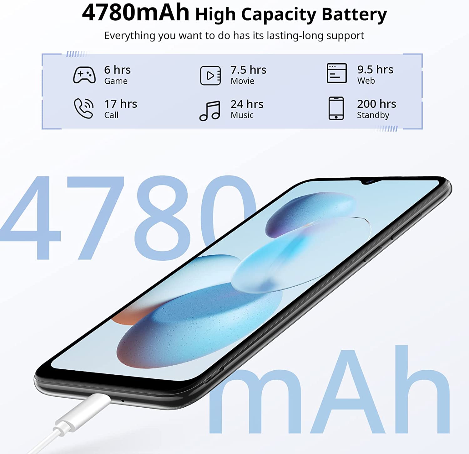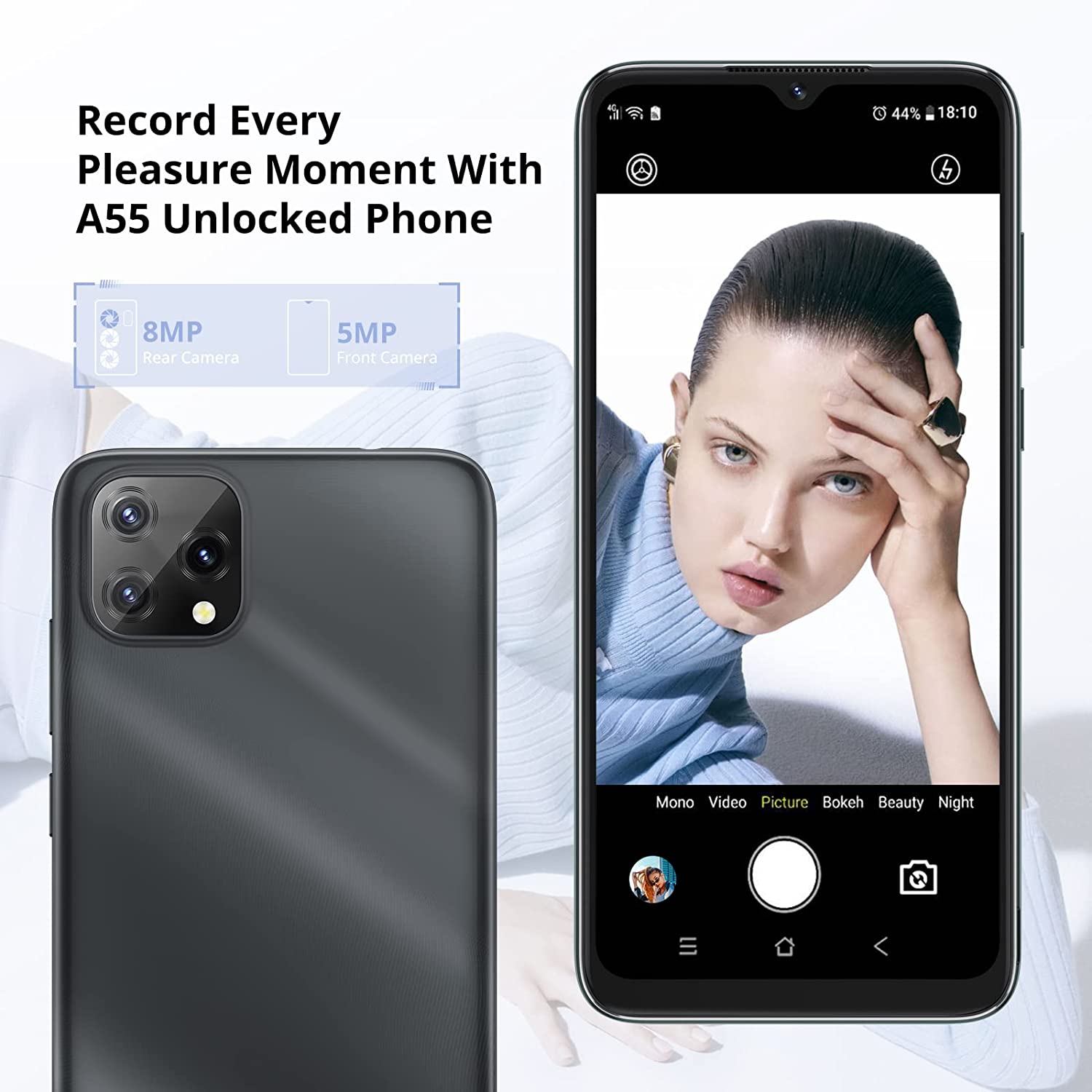 Unlocked Smartphones, Blackview A55, 4G Dual SIM Smartphone, Android 11 OS 3GB+16GB ROM Cell Phones Unlocked, 6.5" HD+, Face ID Detection, 4780mAh high Capacity Battery, T-Mobile Unlocked Phone