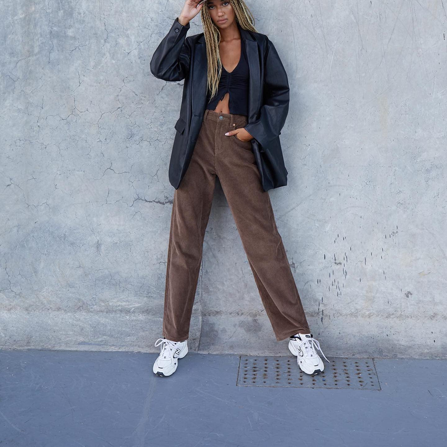 Women Casual Faux Leather Blazer Long Sleeve Button Down Y2K PU Leather Jacket with Pocket
