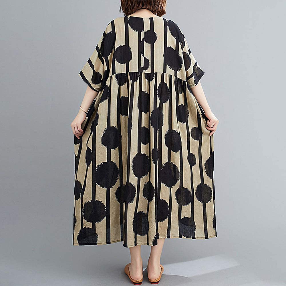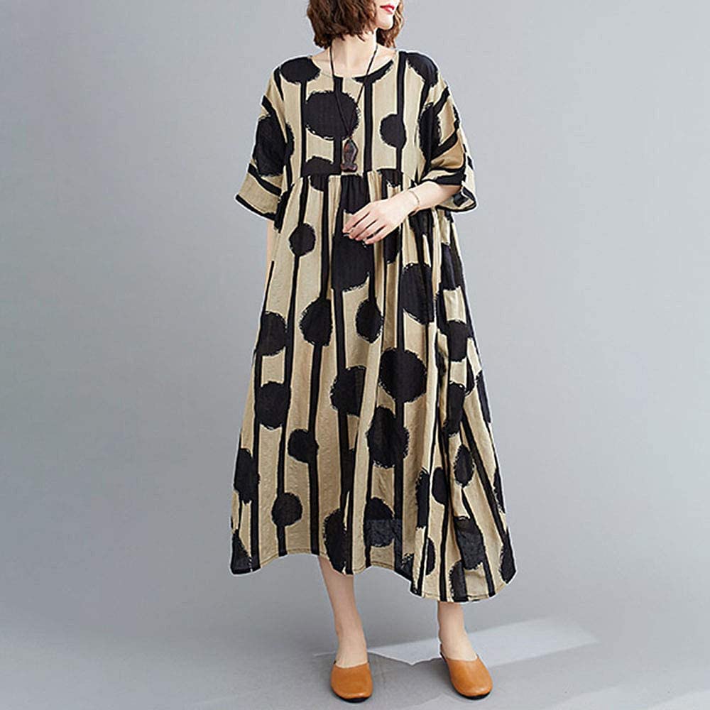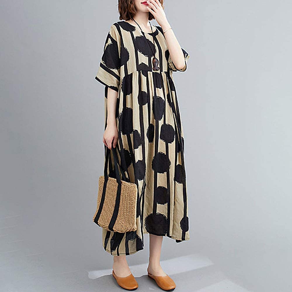 Women Cotton Linen Dress Casual Loose Bohemian Floral Maxi Dress with Pockets