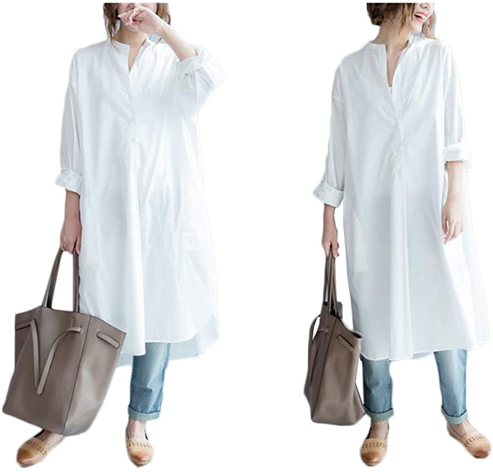Women O-Neck Long Sleeve Button Down Hem Cut Out T-Shirts Dresses Plus Size