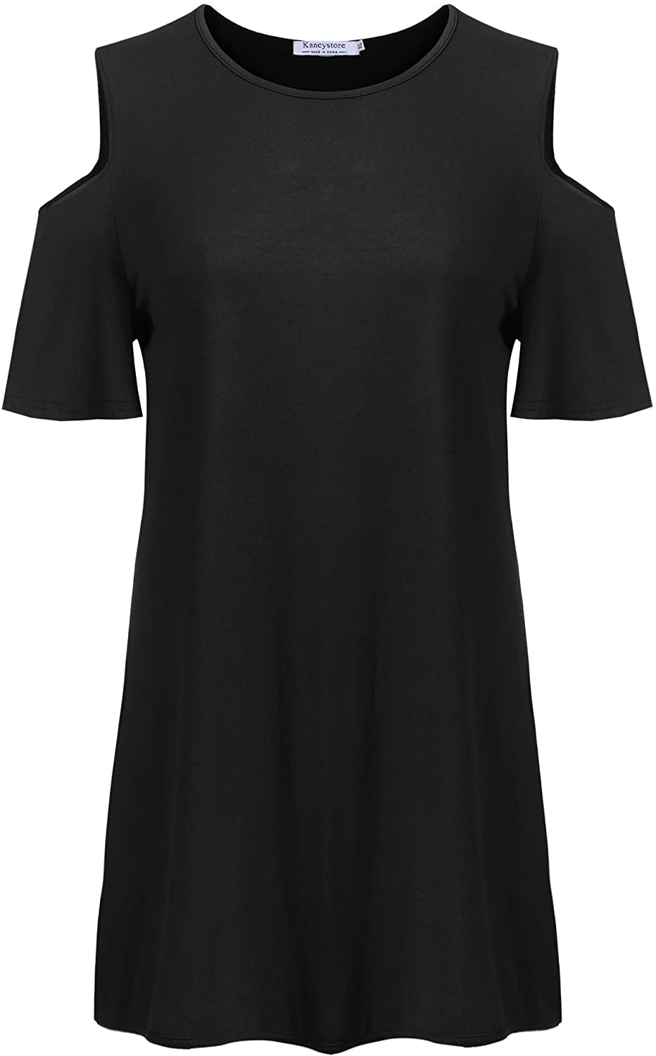 Women Plus Size Dresses Short Sleeve Cold Shoulder Casual T-Shirt Swing Dress with Pockets