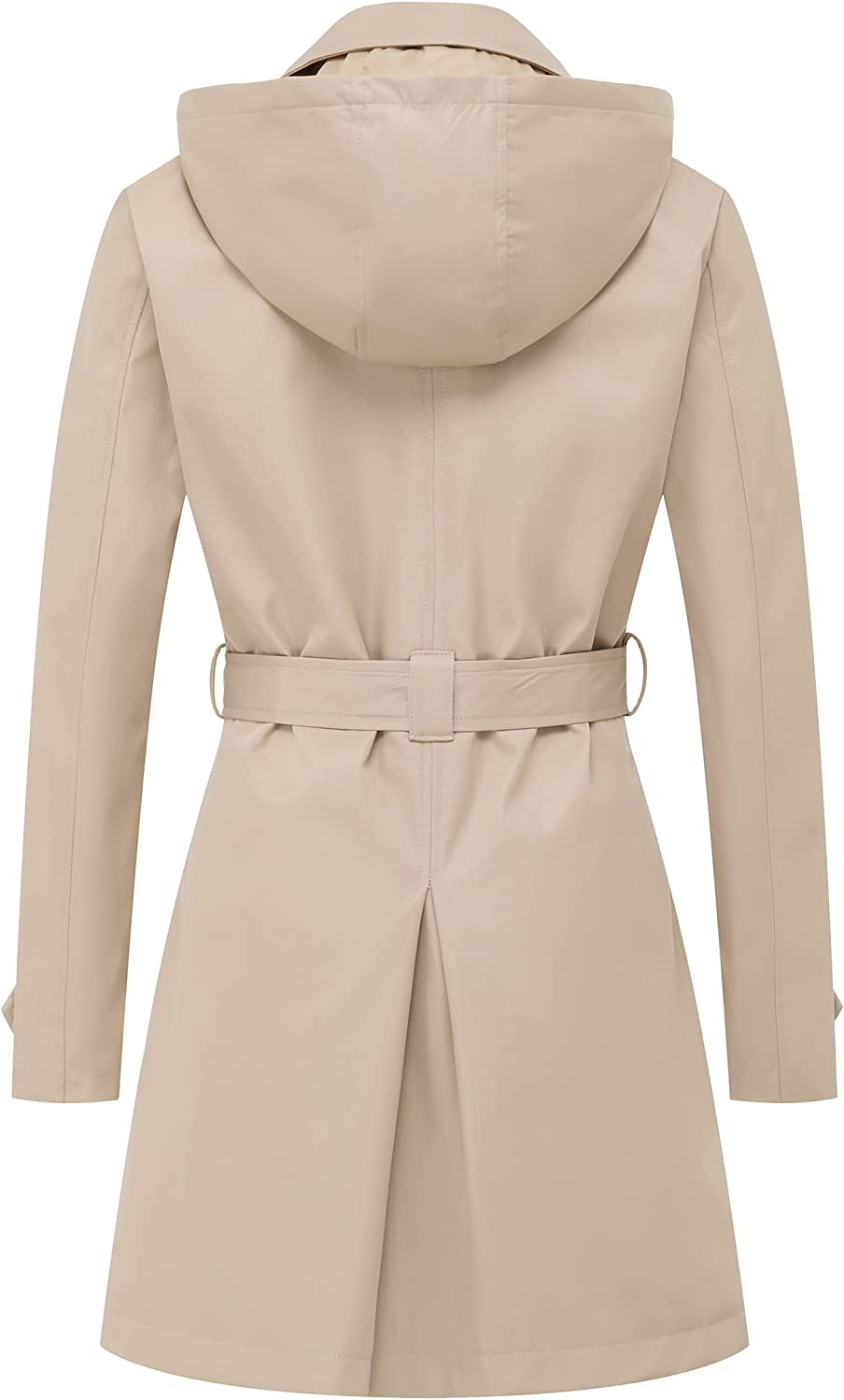 Women's Double Breasted Trench Coats Mid-Length Belted Overcoat Long Dress Jacket with Detachable Hood
