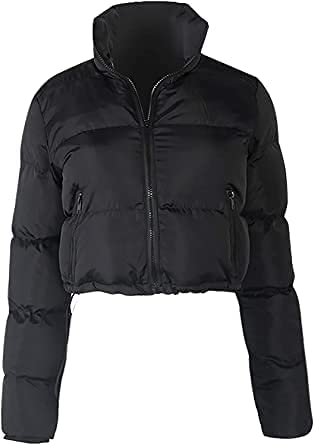 Women's Long Sleeve High Neck lightweight Coat Solid Color Jacket Full Zipper Soft Cropped Jacket Top