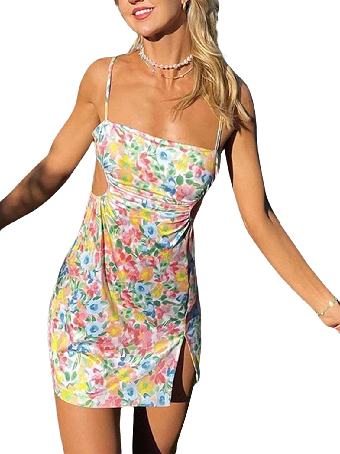 Womens Patchwork Dress Lace Spaghetti Strap Bodycon Cami Mini Dress E-Girl Clothes Nightwear Clubwear