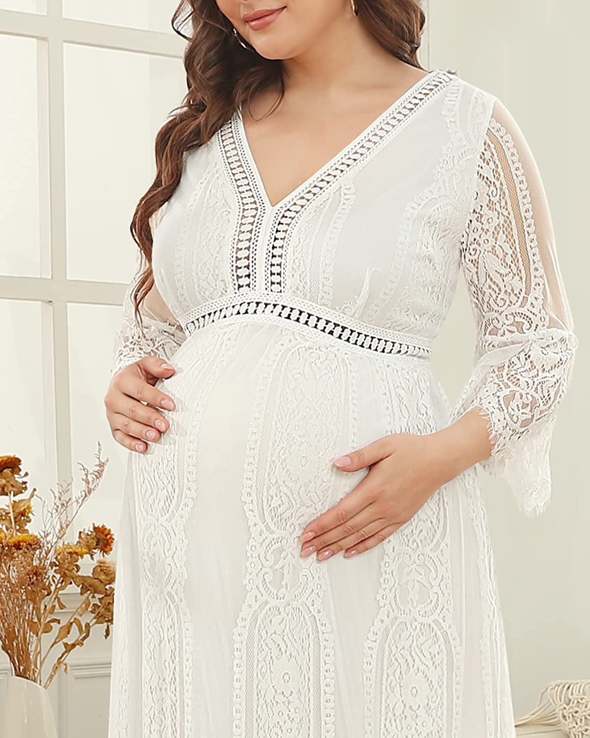 Women's Plus Size Boho Maxi Floral Lace Bohemian Wedding Dress V Neck Flowy Long Party Dresses