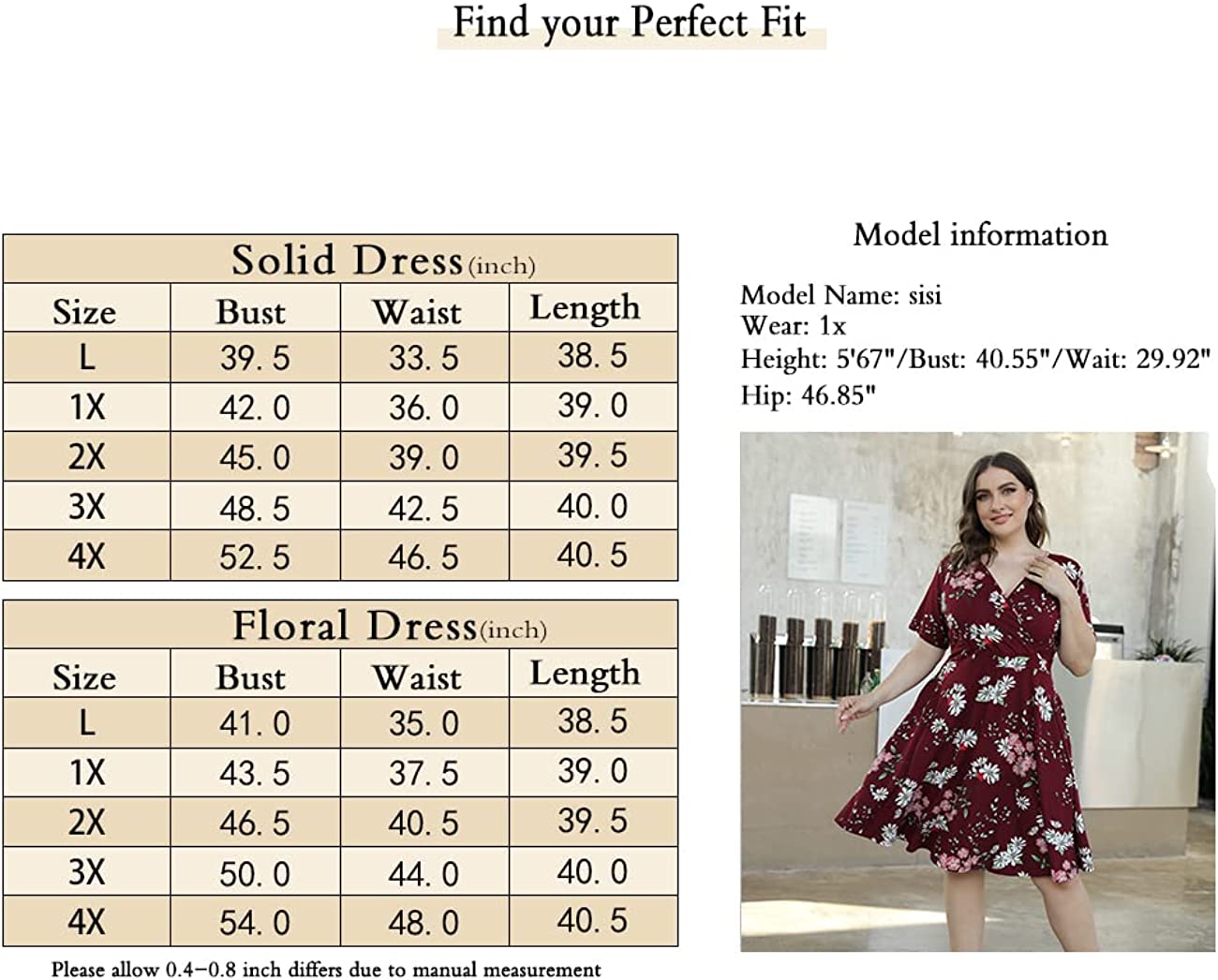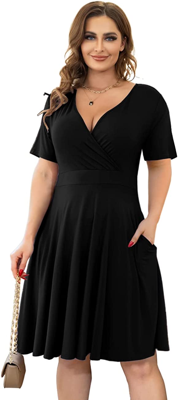 Womens Plus Size Dresses Short Sleeve Faux Wrap Causal Swing Dress with Pockets, L-4XL