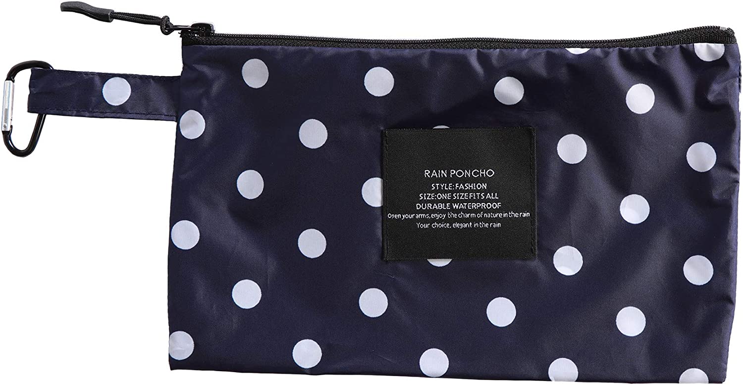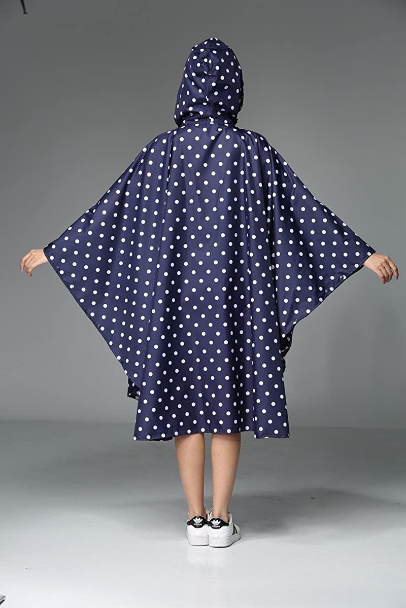 Womens Rain Poncho Stylish Polyester Waterproof Raincoat Free Size with Hood Zipper Various Colors Styles