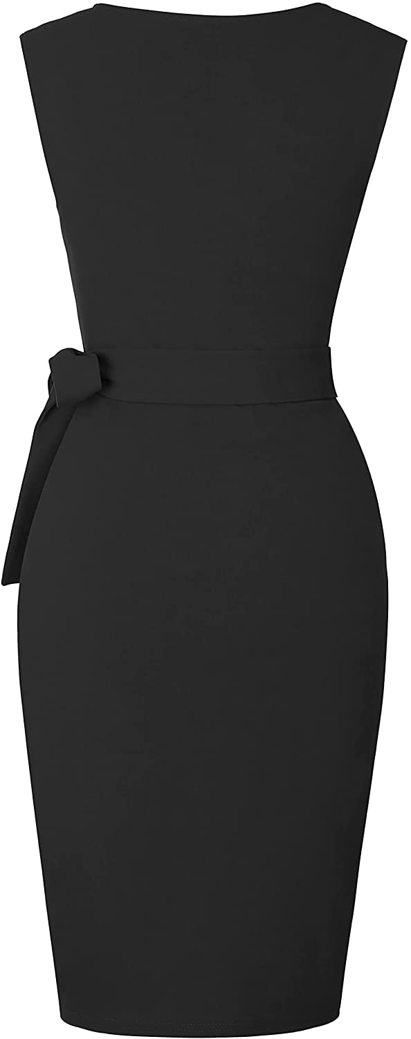 Womens Sleeveless Deep V Neck Sheath Knee Length Cocktail Party Work Faux Wrap Formal Dress