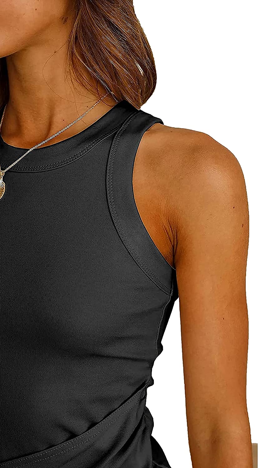 Women's Summer Casual Beach Dress Sleeveless Ruched Tie Tank Bodycon Wrap Mini Dresses