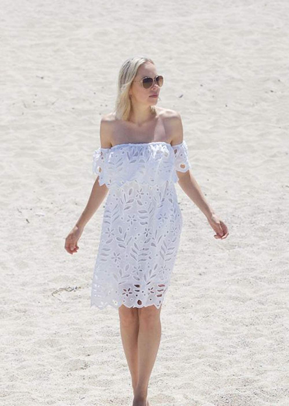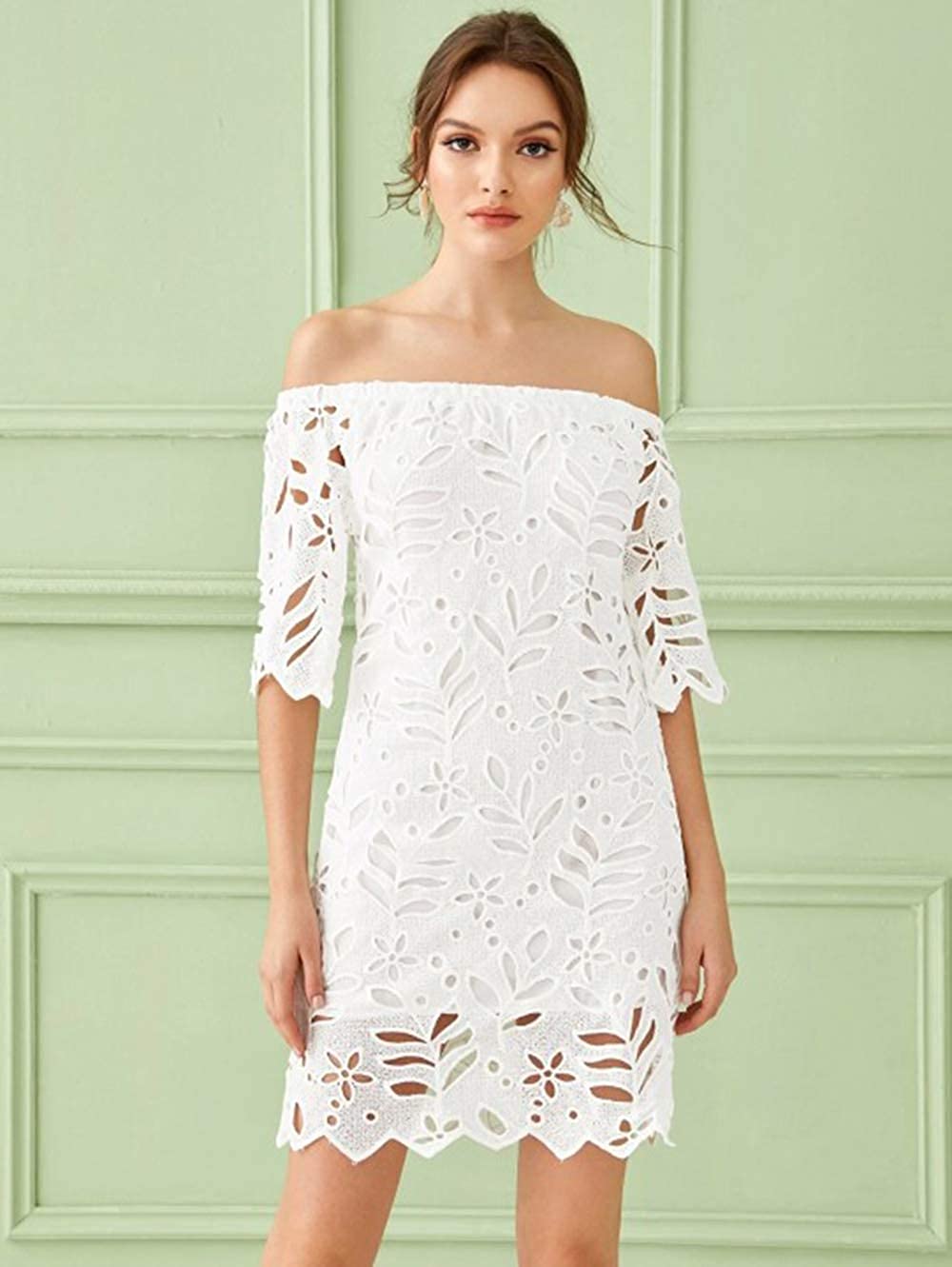 Women's Summer Off Shoulder Vintage Floral Lace Flare Short Sleeve Loose Elegant Mini Dress