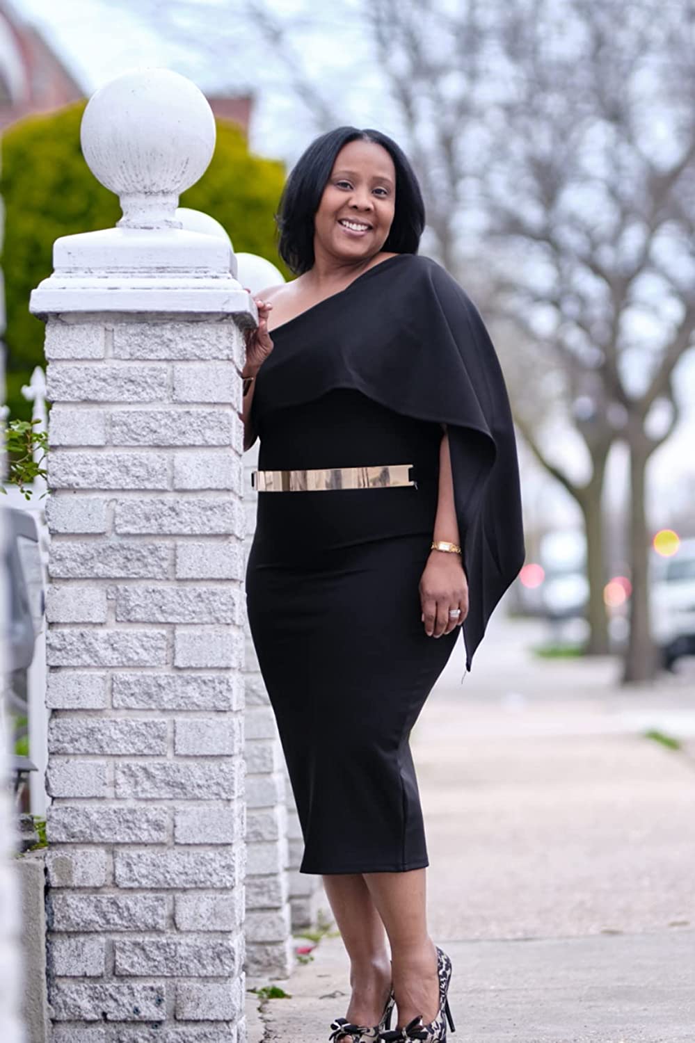 Women's Summer Sexy One Shoulder Ruffle Bodycon Midi Cocktail Dress Burgundy