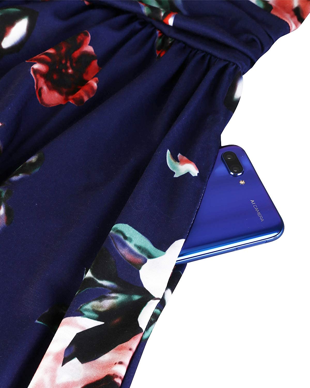 Women's Summer Short Sleeve V-Neck Floral Short Party Dress with Pockets