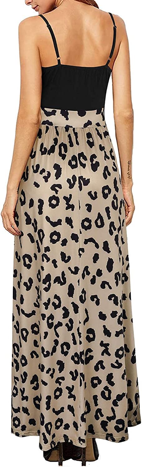 Women's Summer V Neck Spaghetti Strap Sleeveless Casual Split Long Maxi Dress
