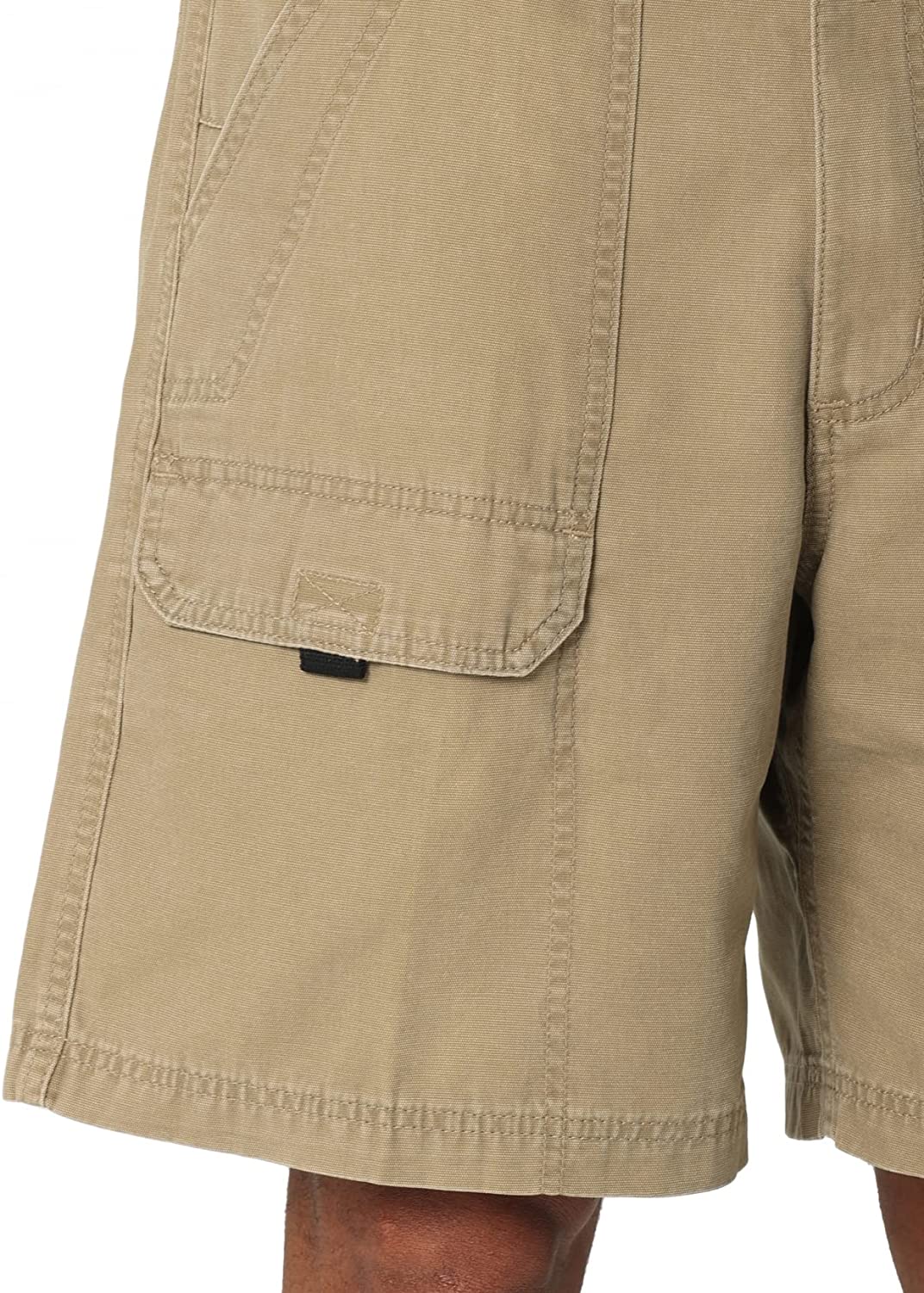 Wrangler Authentics Men's Canvas Utility Hiker Short. Made with pure cotton fabric, these men's shorts are ready for a hike. A relaxed fit and look from the Wrangler name you trust. FEATURES: Durable cotton fabric. (2) Cargo flap pockets, (2) back Velcro pockets and (2) slash pockets. Relaxed fit through the seat and thigh. Sits at the natural waist for a comfortable fit. 8" inseam.