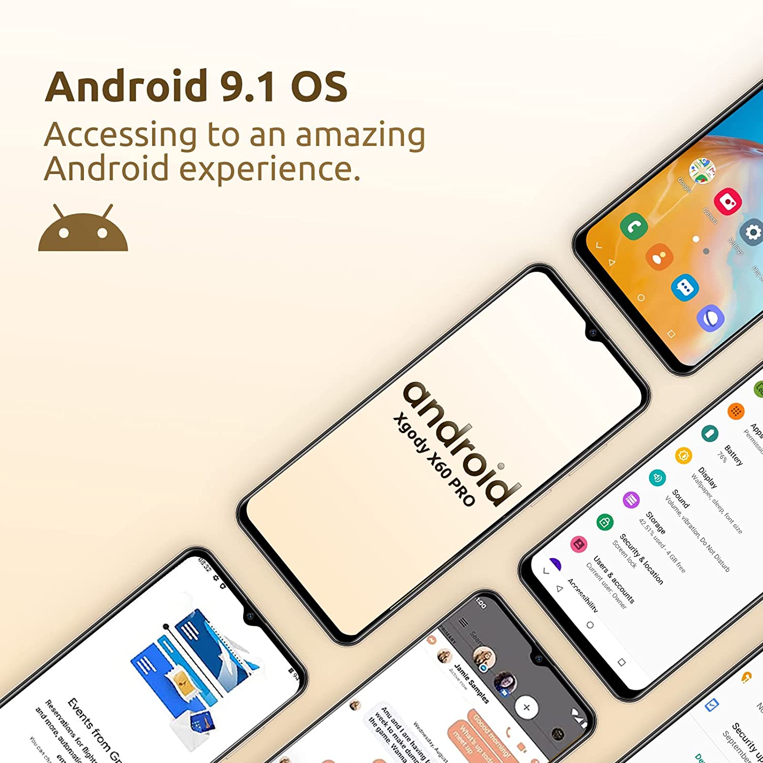 Xgody X60 Pro Unlocked Smartphones, 6.5 Inch Android 9.1 OS Cheap Cell Phones, 2022 4G Dual 5MP Camera and Dual SIM Phones, 3000mAh Massive Battery, Face Recognition (Gold)