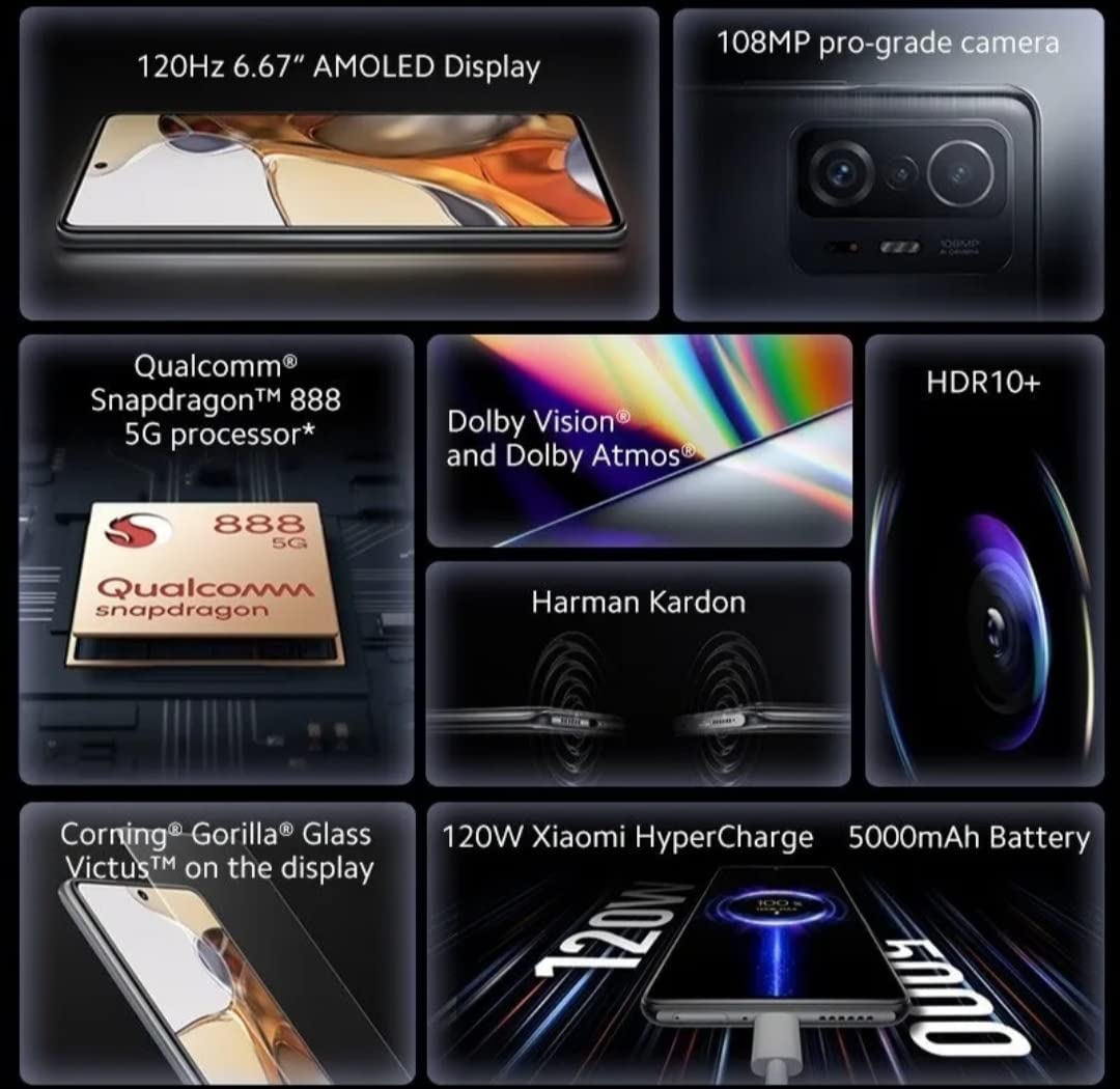 Xiaomi 11T 5G + 4G Volte (128GB, 8GB) 6.67” 108MP Triple Camera, NFC Dual SIM (Not Compatible Verizon Sprint Boost Metro Cricket) GSM Unlocked Global (w/Fast Car Charger Bundle) (Meteorite Gray)