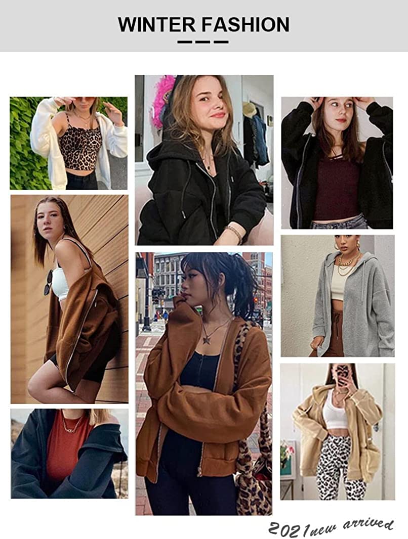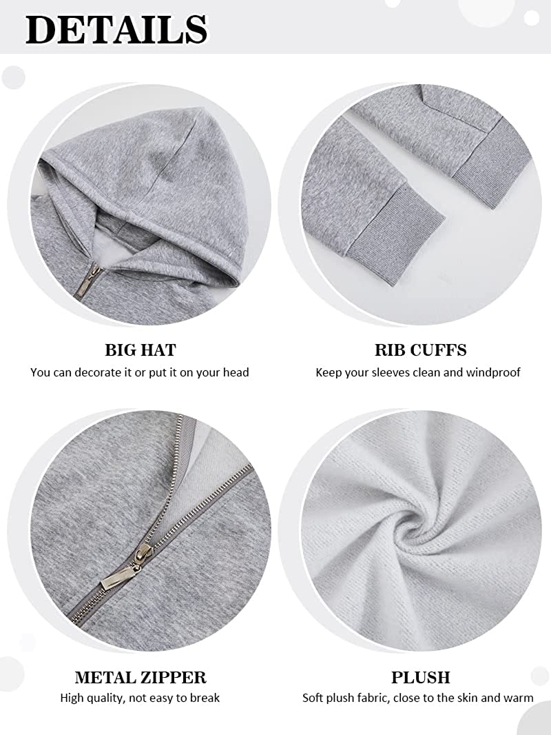 Yousify Women Casual Full Zip Up Plush Hoodie Comfy Loose Solid Sweatshirt Long Sleeve Jacket with Pockets