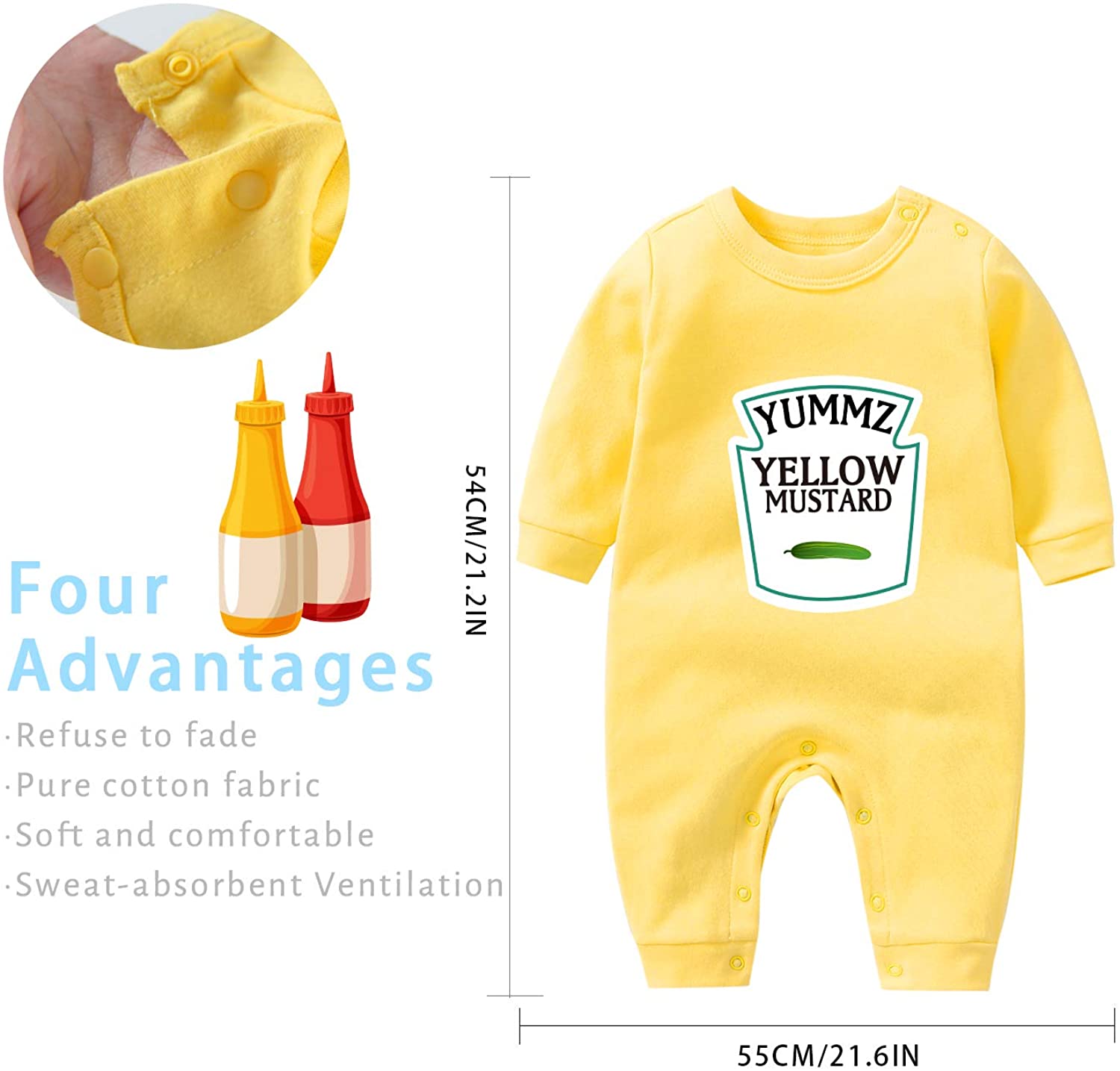 YSCULBUTOL Baby Bodysuit Yummz Tomato Ketchup Mustard Red Yellow Twins Set Boys Girls Clothes Twins Baby Outfits